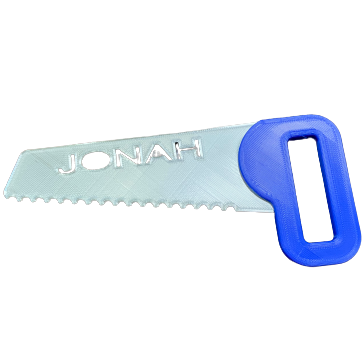 Add a personalized hand saw to your childs workshop. Comes with customized metal look blade with your choice of color for the handle. Allowing you to either coordinate with your toolbox or set it apart!