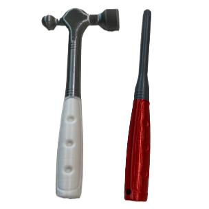 Round out your tool collection with the hammer and screw driver. Both come with metal look heads and custom color handle.
